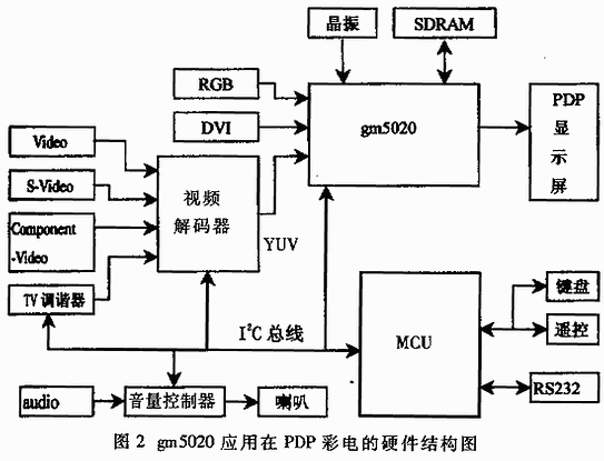图2是gm5020应用在PDP平板显示系统中的硬件电路结构图。